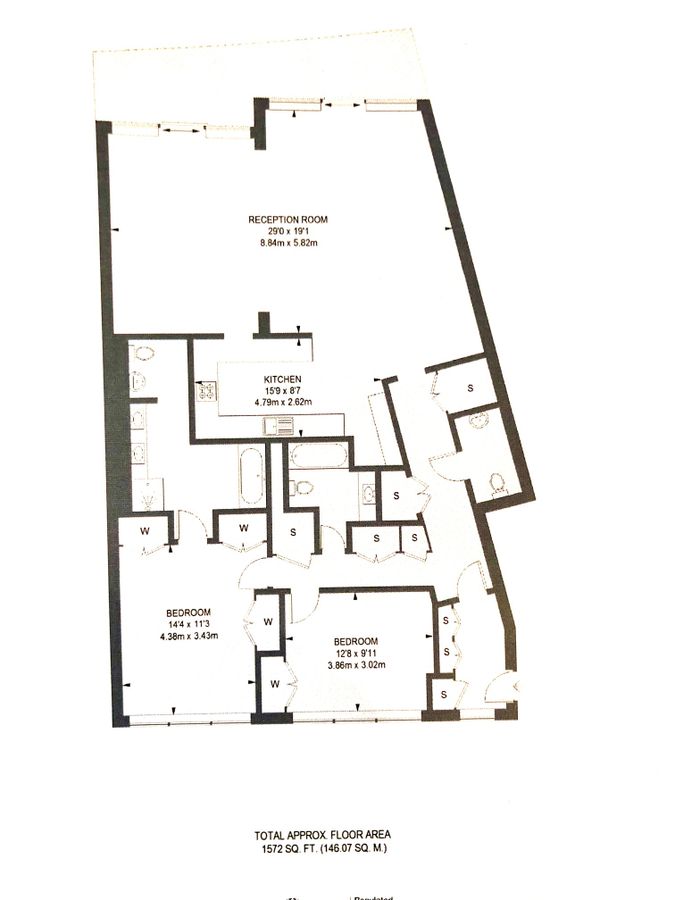 2 beds, 2 baths, 1 reception, 1,572 sq. ft;