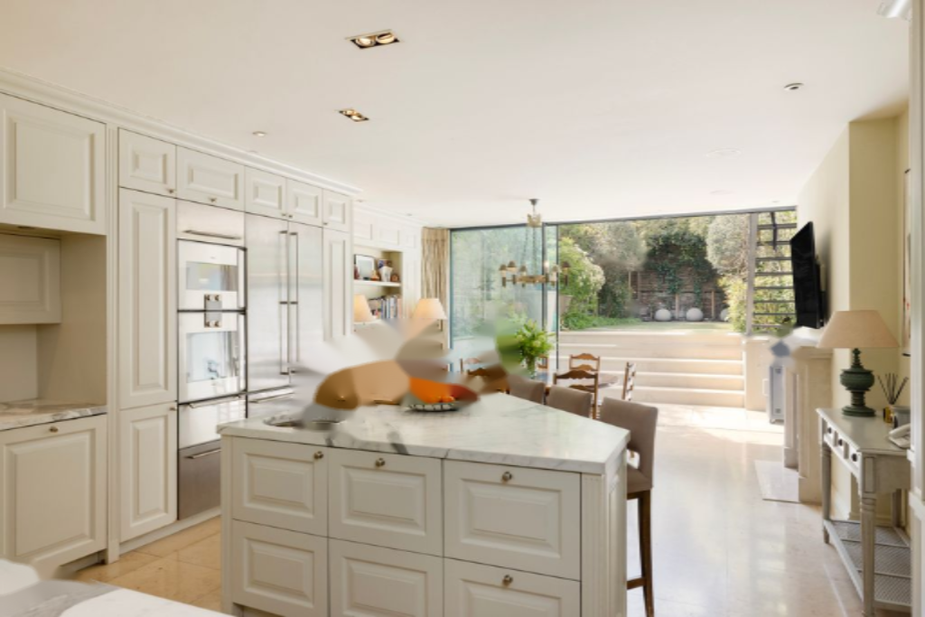 При входе вас встречает впечатляющий интерьер и ощущение величия. На первом этаже помещение предлагается в качестве великолепно оформленной передней гостиной или идеального кабинета, за которым расположена более формальная большая гостиная с декоративным камином и французскими дверями, ведущими в сад через элегантные ступени.