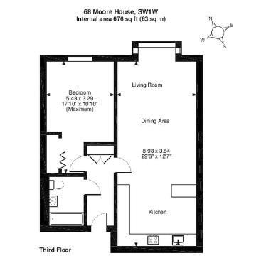 Роскошные апартаменты с одной спальней площадью 675 кв. футов расположены в прибрежном комплексе Moore House, Grosvenor Waterside. Апартаменты меблированы на очень высоком уровне, в них установлен массивный деревянный пол, полностью оборудованная кухня открытой планировки, одна спальня с двуспальной кроватью и встроенным шкафом, современная ванная комната и гардеробная.