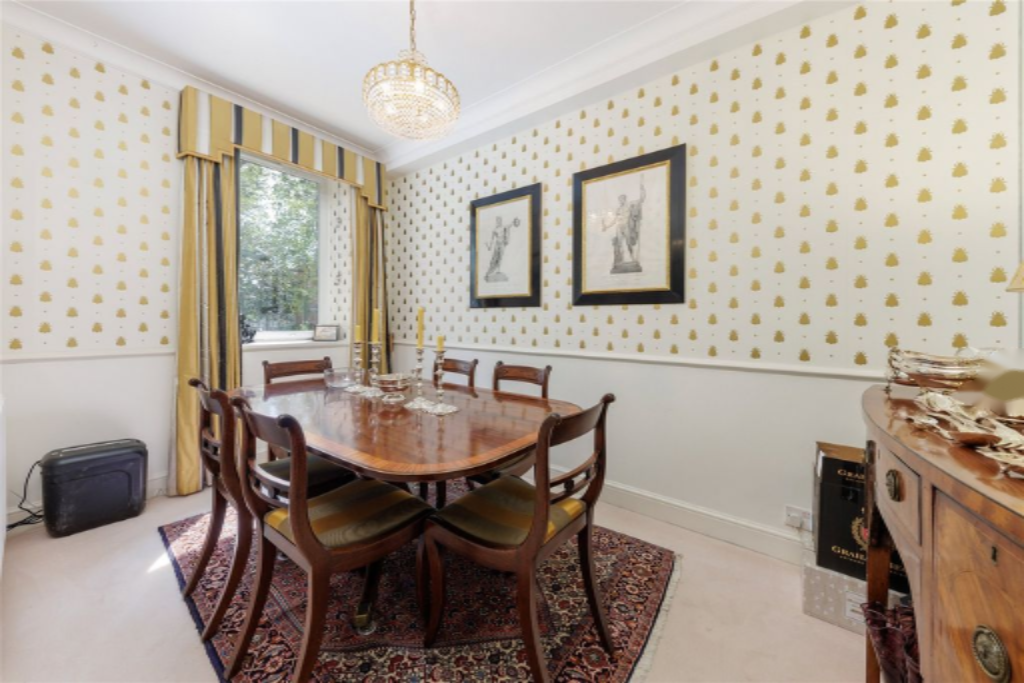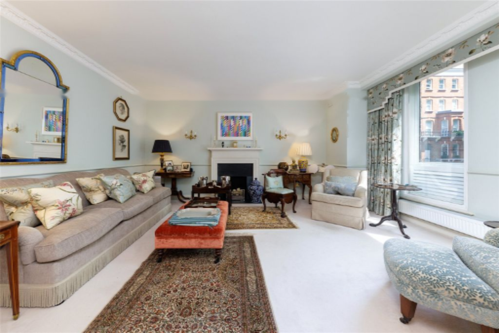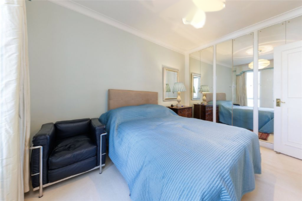 По широкой лестнице наверх находятся еще две спальни со встроенными гардеробами, обе делят общую семейную ванную комнату. В квартире установлены вторичные стеклопакеты, и она предоставляется с охраняемым парковочным местом и кладовой. Здание отлично управляется, имеет значительный резервный фонд и консьержа, расположено на одной из красивейших садовых площадей Челси в нескольких шагах от King's Road, реки и парка Баттерси.