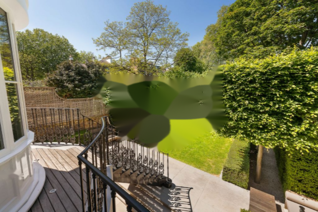 Недвижимость расположена на пяти этажах, первый из которых включает в себя официальную гостиную с панорамными окнами, изысканными деревянными полами, классической лепниной и современным камином. Комната открывается в еще одну гостиную с замечательным видом на зеленый сад и террасу. Также на этом этаже находится кабинет с балконом Жюльетты, с которого открывается вид на сад, и который также выходит на террасу, и гостевой туалет.