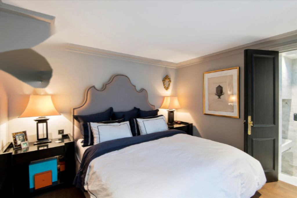 На нижнем этаже расположен основной спальный люкс, оснащенный прекрасной паровой спа и встроенными шкафами из орехового дерева. Имеется вторая двухместная спальня, в настоящее время используемая как кабинет, отдельная душевая комната и прачечная. Все ванные комнаты полностью облицованы мрамором Bianco Carrera, а все основные комнаты оснащены встроенной звуковой системой Sonos.
