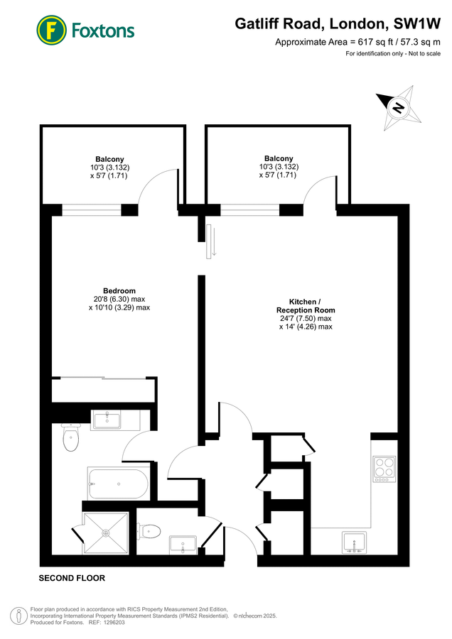 1 bed, 1 bath, 1 reception, 617 sq. ft;