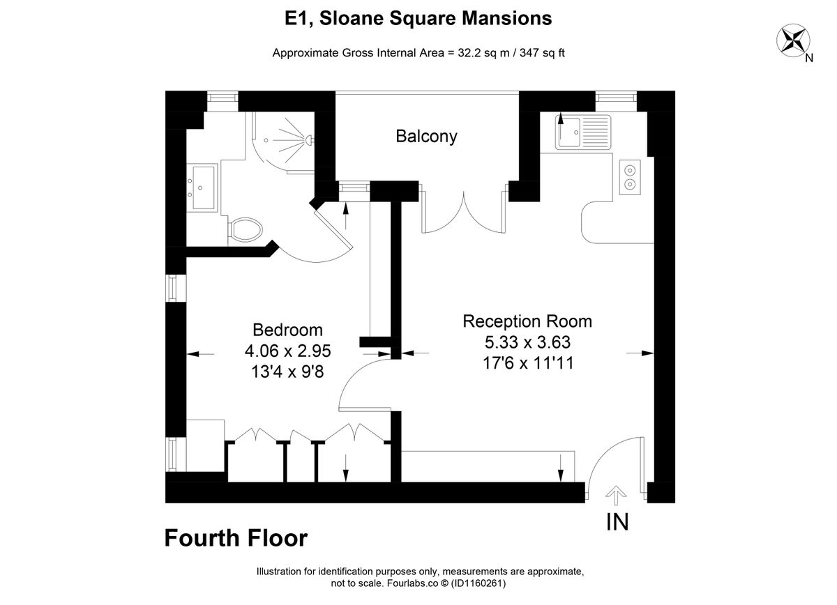 1 bed, 1 bath, 1 reception, 407 sq. ft;