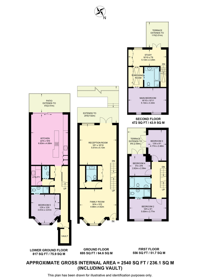 5 beds, 4 baths, 2 receptions, 2,540 sq. ft;