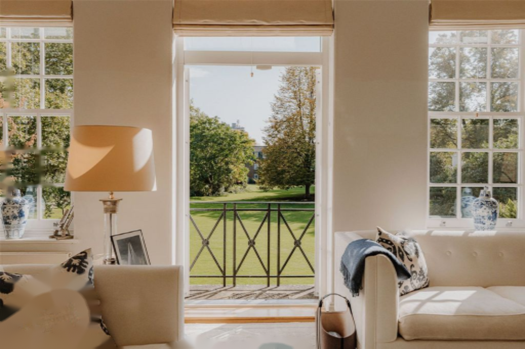 На первом этаже находится большая гостиная почти целиком. Высокие потолки, изысканный камин и пять оконных проемов с видом на общий сад заполняют пространство естественным светом. На этом этаже также расположена спальня с отдельной ванной комнатой.