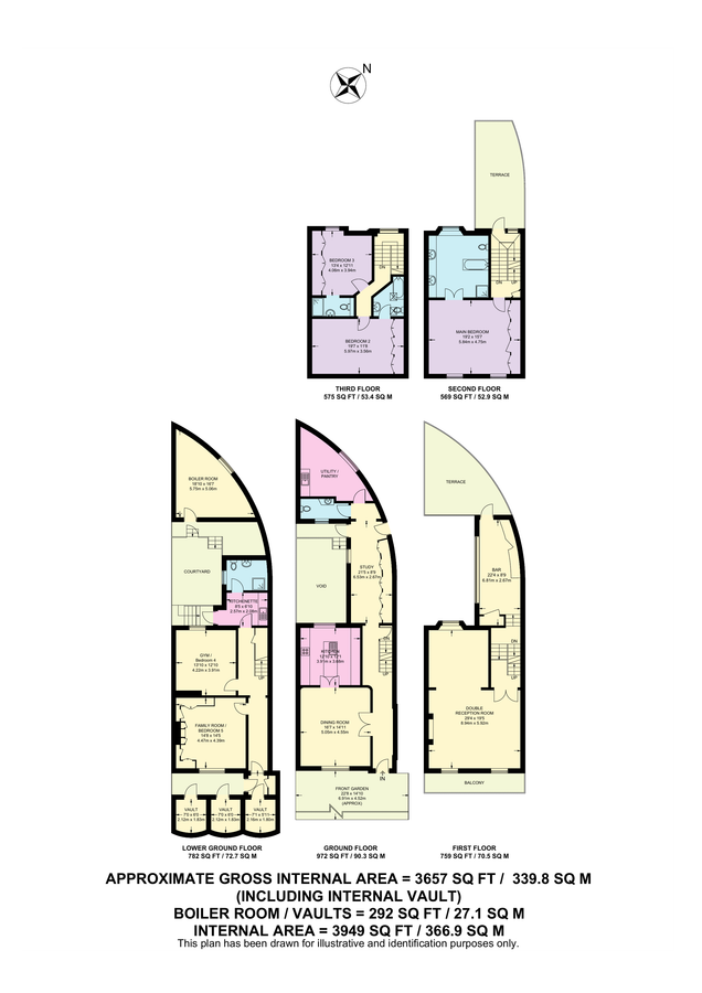 4 beds, 3 baths, 3 receptions, 3,949 sq. ft;