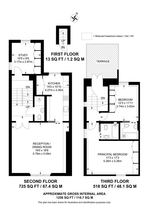 3 beds, 3 baths, 1 reception, 1,256 sq. ft;
