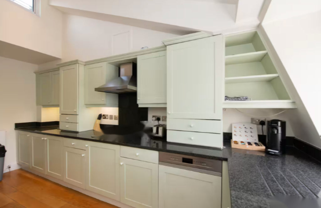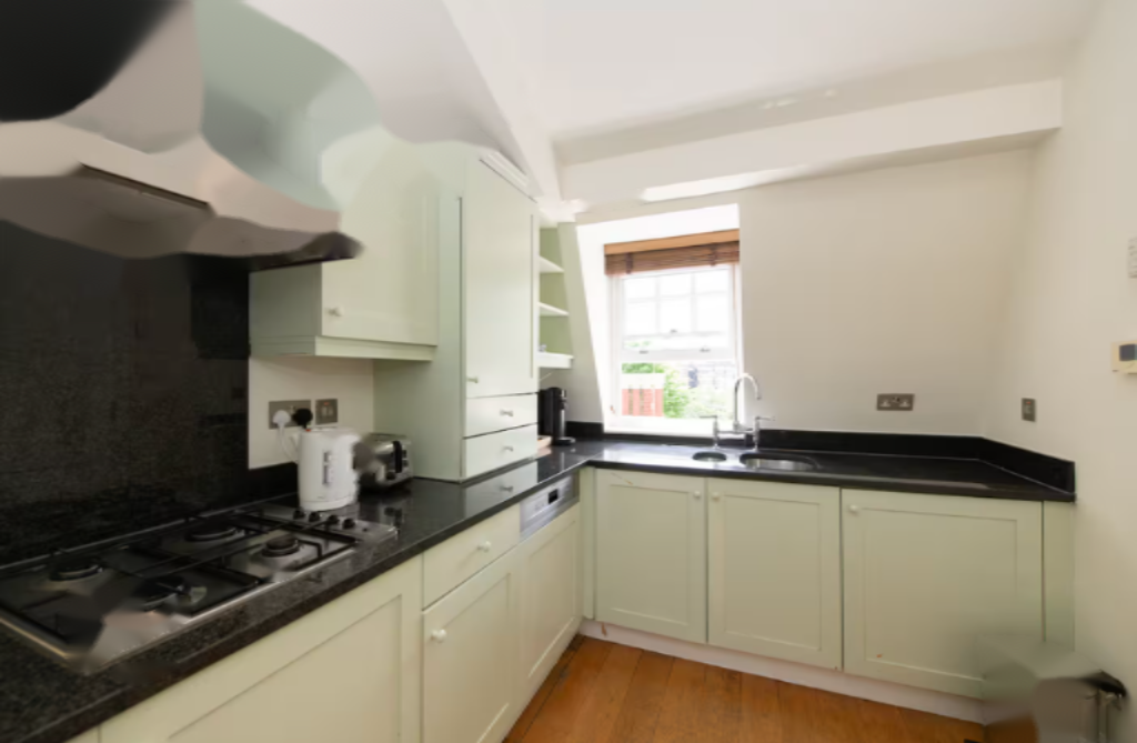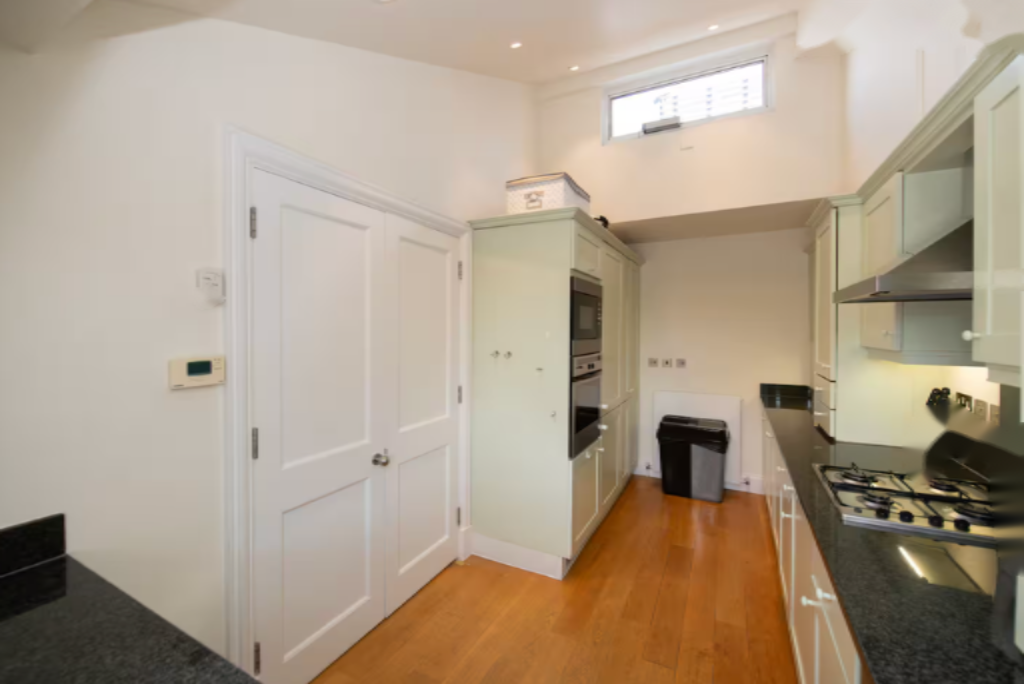 Основная спальня имеет собственную ванную комнату, рядом еще одна гостевая и большая семейная ванные комнаты. Удобно расположена рядом со станцией South Kensington (линии Circle, District и Piccadilly), что обеспечивает легкий доступ в центр города.