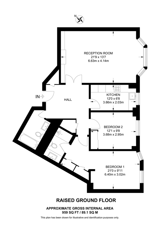 2 beds, 2 baths, 1 reception, 959 sq. ft;