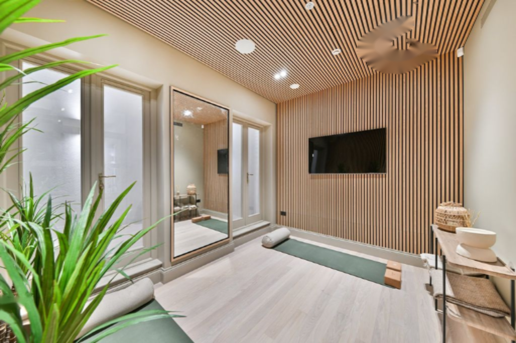 На цокольном этаже находится тренажерный зал/студия с выходом во внутренний дворик, индивидуальная прачечная, техническое помещение и сезонное хранилище. Столовая с кухней находятся чуть ниже, наряду с хорошо отделенной спальней 4 с душевой комнатой. Первый этаж включает две спальные комнаты, которые делят просторную семейную ванную. Весь верхний этаж отдан главной спальне с гардеробной и красивой столярной работой, что обеспечивает спокойную атмосферу с обилием света и потрясающими видами из больших окон.