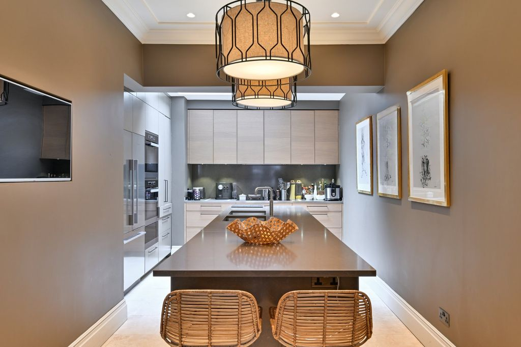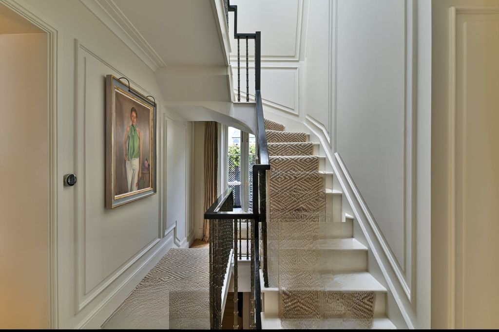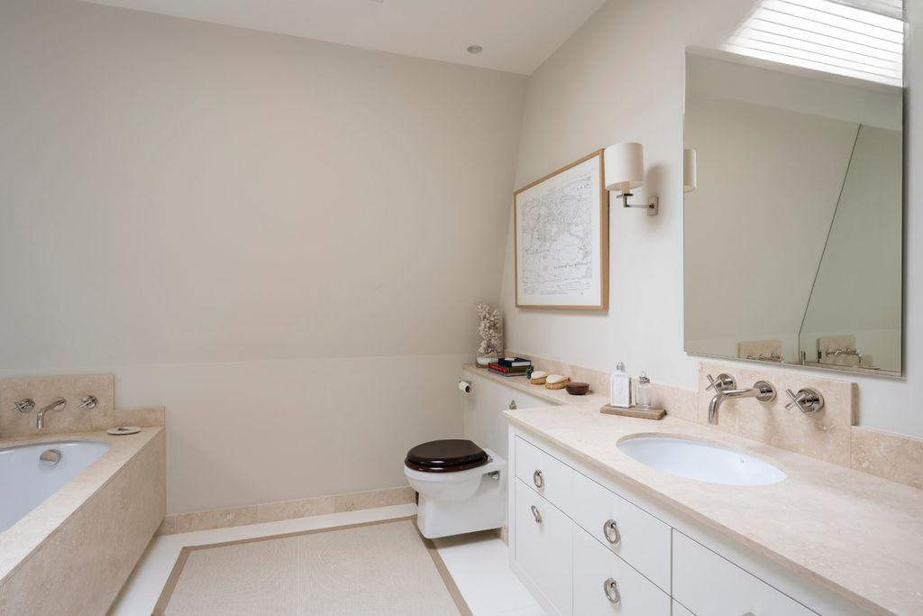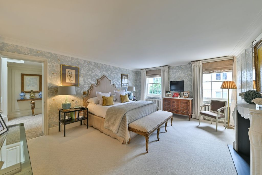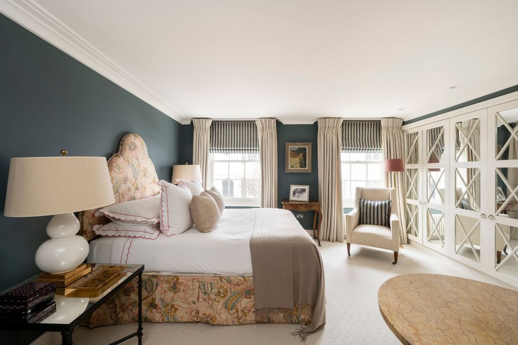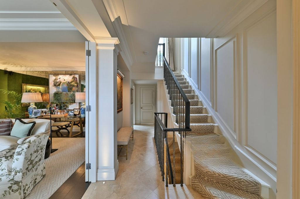 На первом и втором этажах расположены четыре двуспальные спальни, каждая с роскошной ванной комнатой, выполненные по индивидуальному заказу и оформленные в более прохладных и умиротворяющих тонах. С каминами от Chesney's, изысканными обоями с узорами от Sandersons и идеальным балансом пространства верхние этажи демонстрируют такой же тщательный подход к дизайну, как и остальные части дома.