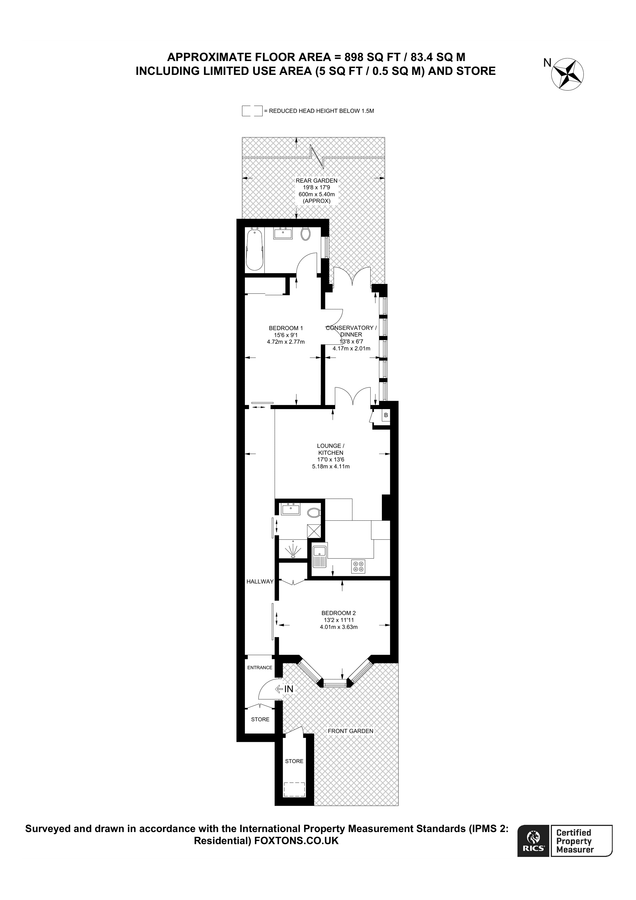 2 beds, 2 baths, 1 reception, 898 sq. ft;