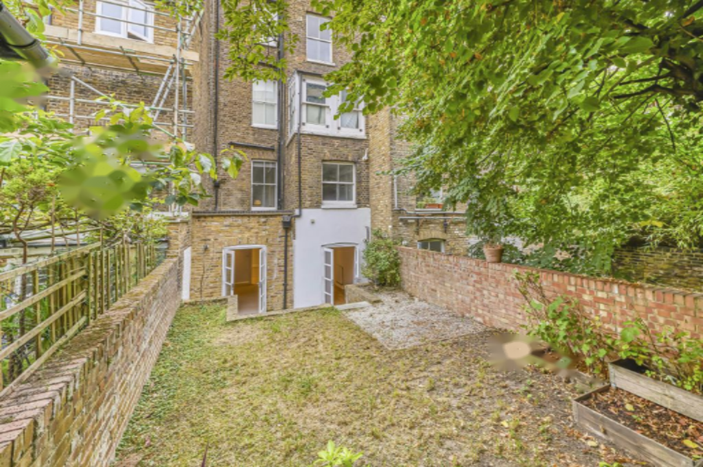 Квартира находится в цокольном этаже и имеет отдельный вход. В главной спальне предусмотрены встроенные шкафы, обе спальни имеют прямой выход в задний сад. Жилая площадь просторная, с прямым доступом к кухне.