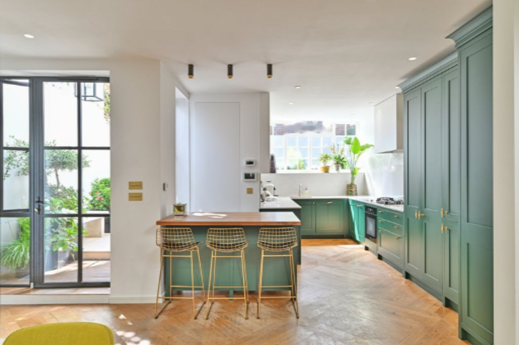 По прибытии дом открывается в просторную двухуровневую приемную комнату под сводчатым потолком, где яркие световые шахты и оригинальное окно-вентилятор заполняют пространство светом. Красивый штучный паркет, двери в стиле crittall и изящные архитектурные детали создают атмосферу вечной элегантности. Планировка открытой концепции плавно переходит в обеденную зону, соединяясь с большой гостиной и специально спроектированной семейной кухней, что идеально подходит как для интимных, так и для масштабных приемов.