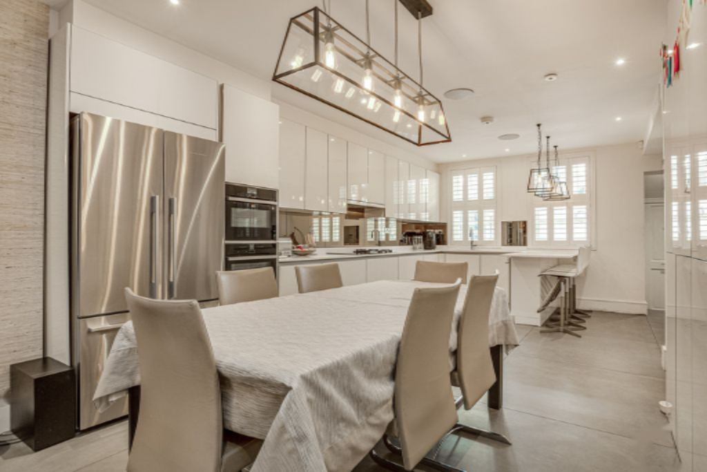 Нижний этаж тщательно спланирован для удовлетворения потребностей современной семьи. Здесь находится просторная кухня открытого плана, объединенная с обеденной и семейной зонами, которая становится сердцем дома. Это большое и многофункциональное пространство идеально подходит для повседневных встреч и торжественных событий, предлагая достаточно места для общения, обедов и семейного времяпрепровождения. Хорошо оборудованное подсобное помещение и гостевой туалет добавляют удобства, сочетая практичность с высококлассным дизайном, чтобы дом функционировал безупречно, не теряя в стиле и утонченности.