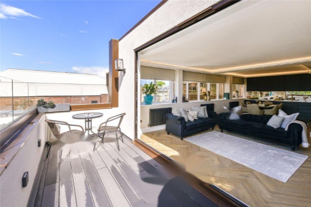 На верхнем этаже расположена большая кухня-гостиная открытой планировки, ведущая на частную террасу на крыше с видом на район Bolton Conservation. Главная спальня включает в себя гардеробную и ванную комнату. Две дополнительные спальни с двуспальными кроватями, семейная ванная и гостевой санузел дополняют нижний этаж. Квартира также имеет длинный лизинговый срок и частное парковочное место на подземной стоянке.