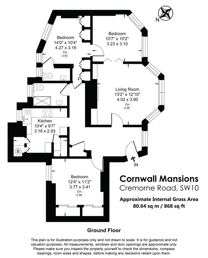 3 beds, 2 baths, 1 reception, 868 sq. ft