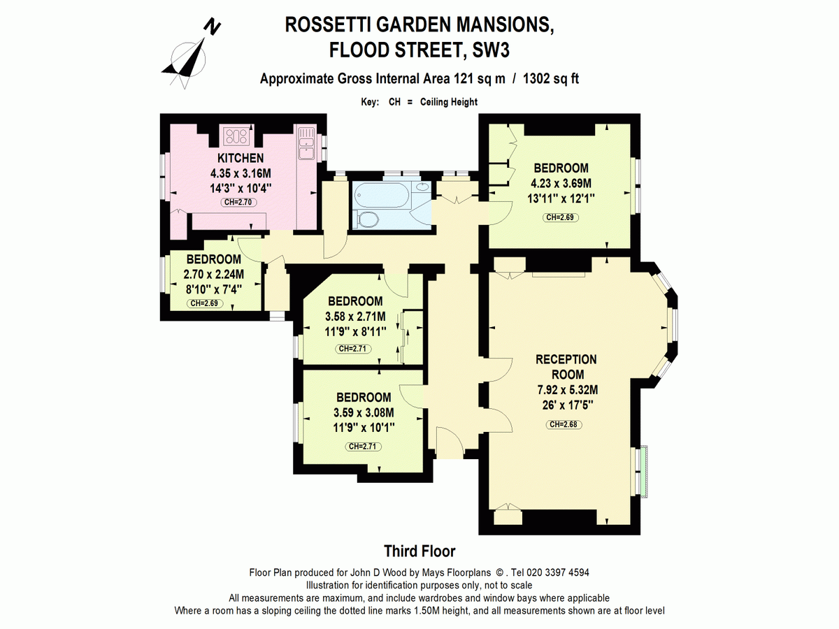 4 beds, 1 bath, 2 receptions, EPC Rating: D