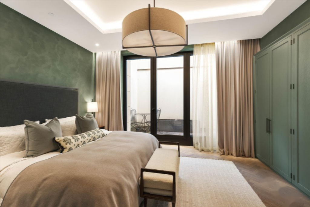Продуманная планировка позволяет создать просторные комнаты и световой люк на нижнем этаже, не только обеспечивающий обилие естественного света, но и служащий уединенной террасой, с панорамными дверями, открывающимися из главной и второй спален — это действительно исключительное пространство для отдыха и размышлений, соединяющее внутренний и внешний миры. Каждая индивидуальная ванная комната отделана натуральным камнем, а мастер-ванная — с мрамором с совпадающим рисунком и отдельно стоящей ванной. Оборудованные ручными никелированными кранами и мебелью, это самые роскошные пространства для релаксации и отдыха.