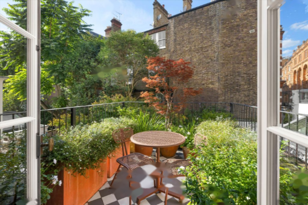 Семейная столовая открывается в уединенный сад с открытым камином, создающий отличное пространство для жизни и развлечений. На первом этаже прекрасная главная спальня с окнами от пола до потолка и камином, а также с личной террасой на полулестнице. На втором этаже расположена еще одна спальня, в настоящее время используемая как гардеробная, с небольшой гардеробной на полулестнице. На третьем этаже находятся еще две спальни и одна ванная комната. Этот уникальный дом излучает вечную очаровательность и великолепие.