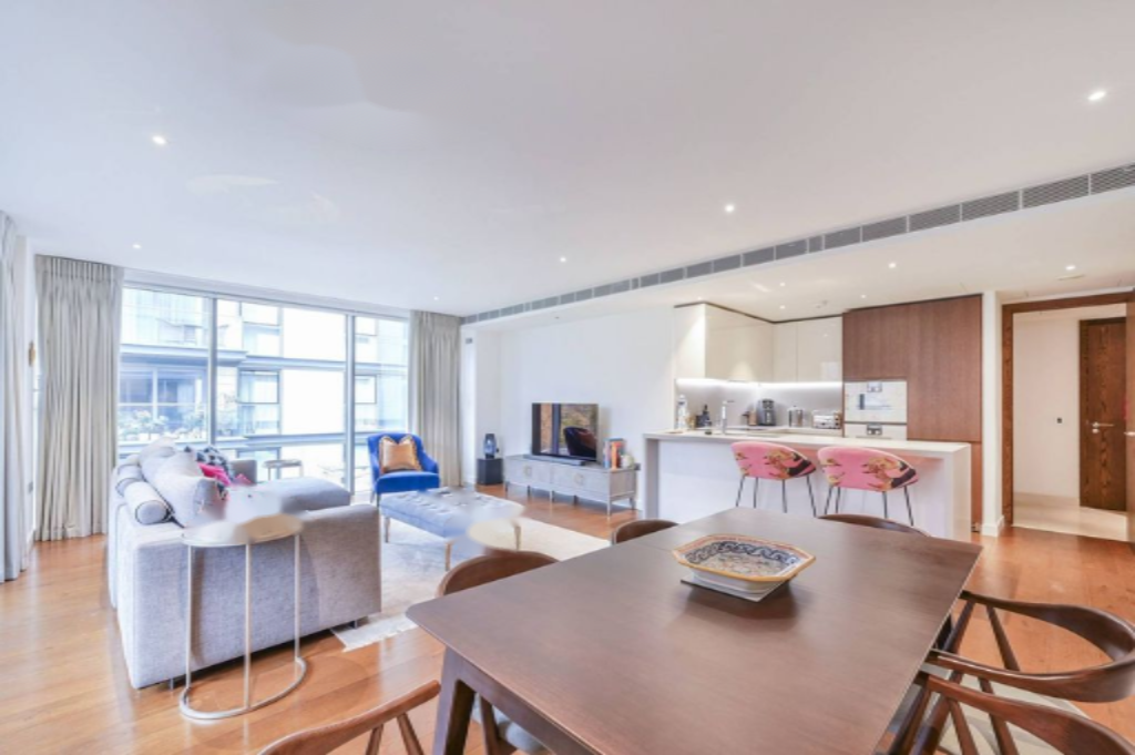 Эта стильная трёхкомнатная квартира расположена на берегу реки Темзы и предлагает множество мест хранения, а также кухню в современном стиле с удобствами от Gaggenau.