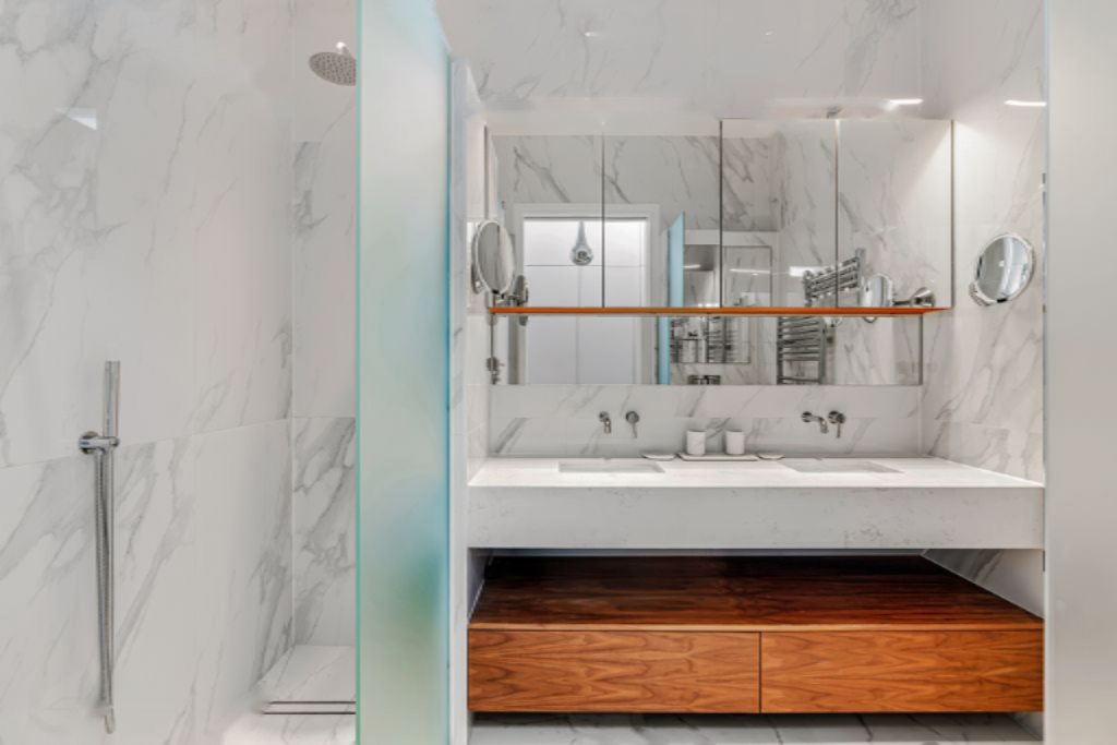 Снаружи юго-западная ориентация становится заголовком: многоуровневые террасы и просторный сад предоставляют настоящее открытое пространство, что является редкостью в этой части Челси. В доме остаётся тихая роскошь — встроенные шкафы, тёплые полы в кухнях и ванных, и гармоничная палитра материалов, связывающих комнаты.
