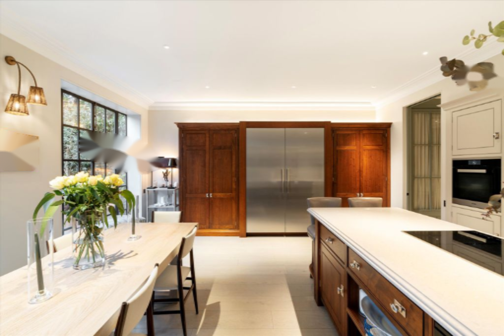 Расстоянием от дороги за очаровательным передним садом, дом открывается в широкий коридор с индивидуально изготовленной мебелью и скрытой рабочей зоной, задавая тон мастерству, которое продолжается по всему дому. Спереди располагается уютная семейная медиа-комната, а сзади открывается великолепная кухня и столовая с продуманной планировкой и впечатляющими от пола до потолка дверями в стиле Crittall, ведущими прямо на прекрасную террасу-сад, созданную руками профессионала Chelsea Flower Show.