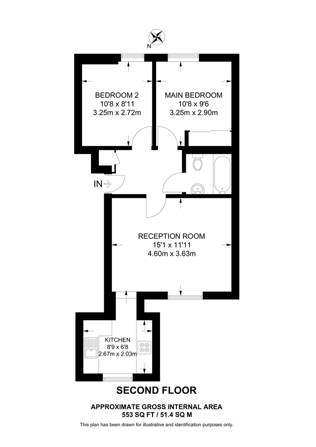 2 beds, 1 bath, 1 reception, 553 sq. ft;