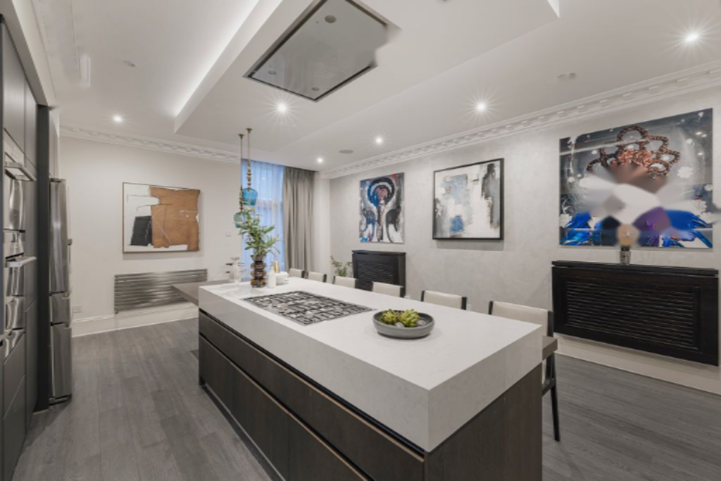 Площадью примерно 1,698 кв. футов, квартира была умело отреставрирована, с фокусом на пропорции, плавность и качество отделки. Основное жилое пространство разворачивается как просторная открытая гостиная и кухня, рассчитанные как для развлечений, так и для повседневной жизни. Панорамные окна привносят естественный свет, а продуманное освещение и детализация потолка создают уют и определенность в пространстве.