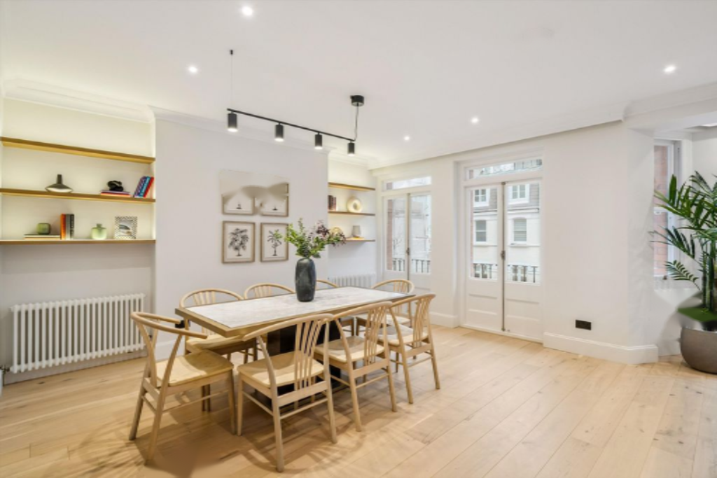 Эта квартира предоставляет большое пространство, высокие потолки и планировку, способствующую как повседневной жизни, так и работе из дома. Комбинация просторной гостиной, отдельного офиса и трех спален делает её универсальным домом в востребованном районе Челси.