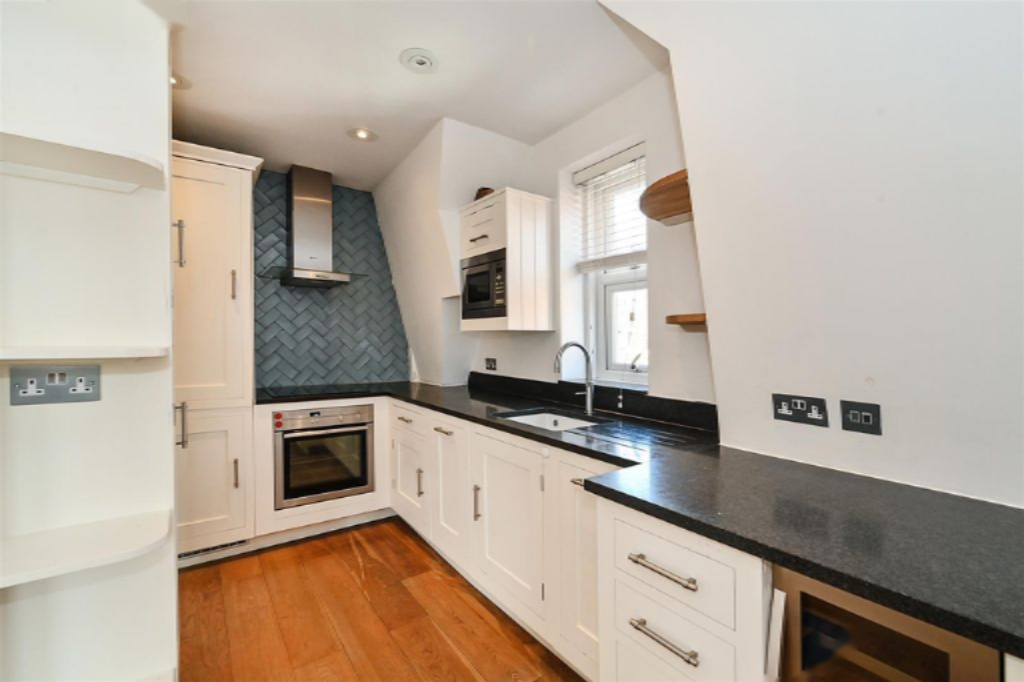 Квартира расположена на третьем этаже ухоженного исторического здания с лифтом и занимает около 800 квадратных футов. Она находится на одной из самых престижных улиц в центре Челси, Draycott Place.