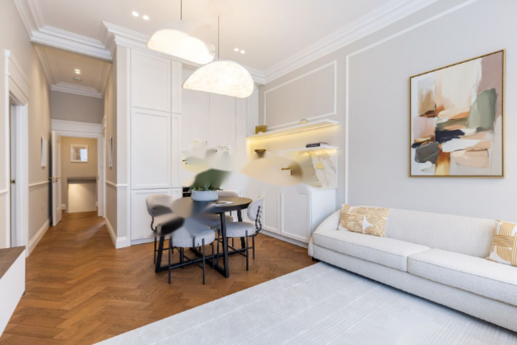 Великолепная дизайнерская квартира на втором этаже с непрерывными видами на садовые скверы и церковь St Lukes, а также очаровательной задней панорамой крыш в стиле «Мэри Поппинс». ✨ Текущий владелец тщательно продумал каждую деталь, чтобы создать современный шедевр, который также уважает викторианский стиль. Поражающая высота потолков, элегантная лепнина и большие, новые окна со створками придают свет и простор. Роскошный паркет из дуба, уложенный «елочкой», проходит по всей квартире. Индивидуальная кухня в стиле шейкер с современными элементами аккуратно интегрирована в драматичную гостиную.