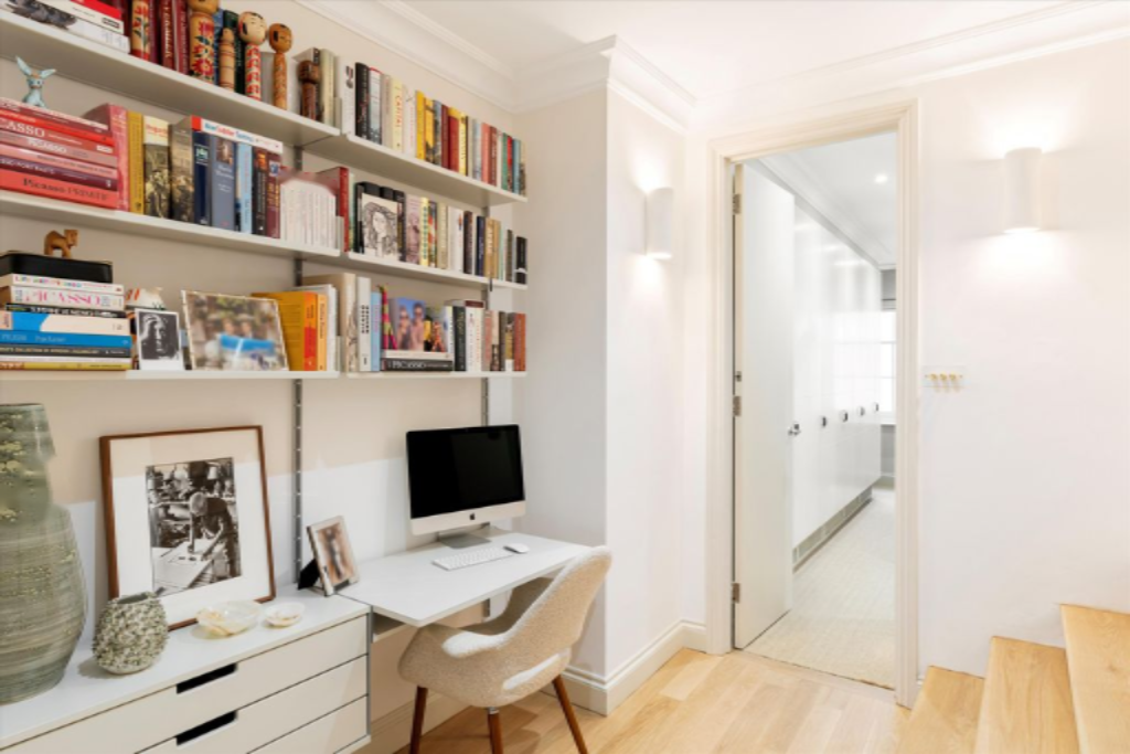 Жилое пространство включает просторный главный люкс со встроенной мебелью и хорошо обставленную вторую двухместную спальню с собственной ванной комнатой. Гостевой туалет и скрытая прачечная добавляют функциональности и удобства. Дополнительно квартира располагает отдельной просторной кладовой — бесценным активом в центре Лондона.