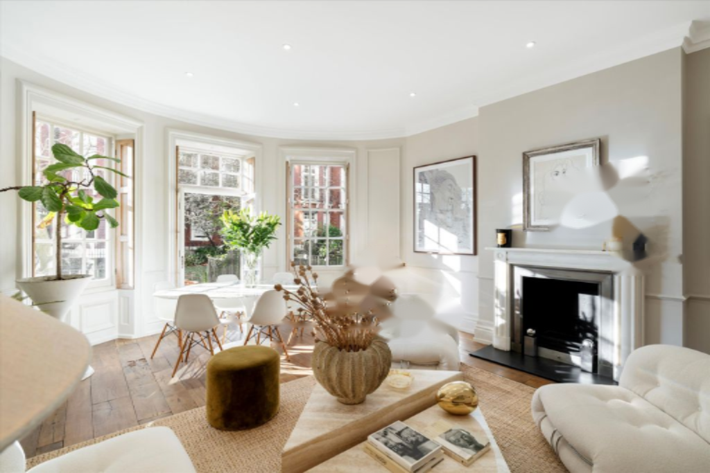 Этот элегантный дом демонстрирует изысканные архитектурные черты, исключительное естественное освещение и превосходную высоту потолков. Редким преимуществом является прямой доступ к прекрасно ухоженным общим садам, что создает гармоничное сочетание утонченности и покоя.
