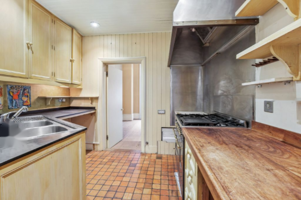 Действующая планировка включает в себя гостиную, столовую, кухню, четыре спальни с двуспальными кроватями, три ванные комнаты и отдельную кухню на нижнем этаже.