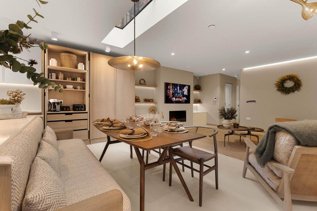По всему дому уложено элегантное твердое напольное покрытие с подогревом. Верхние этажи оборудованы встроенной системой кондиционирования, обеспечивающей комфорт в любое время года, а сделанная на заказ мебель тщательно спроектирована для визуальной гармонии и системы хранения. Каждый элемент дома внимательно продуман, создавая изысканное пространство для жизни с акцентом на комфорт, доступность и качество.