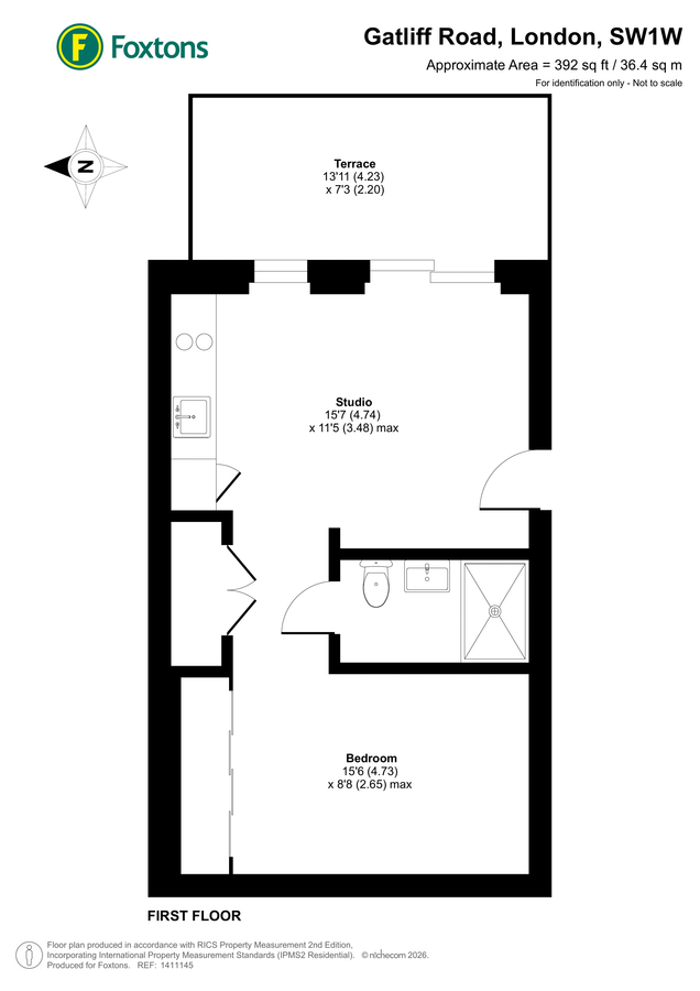1 bath, 392 sq. ft