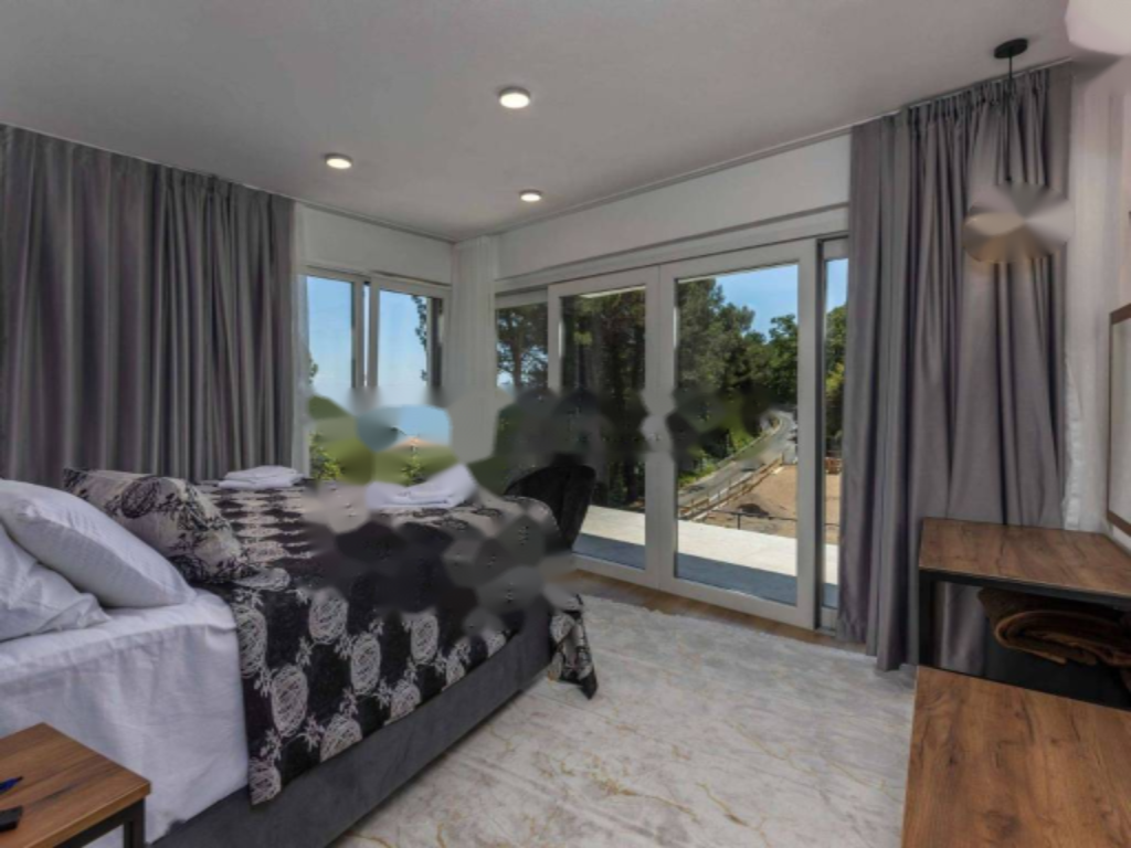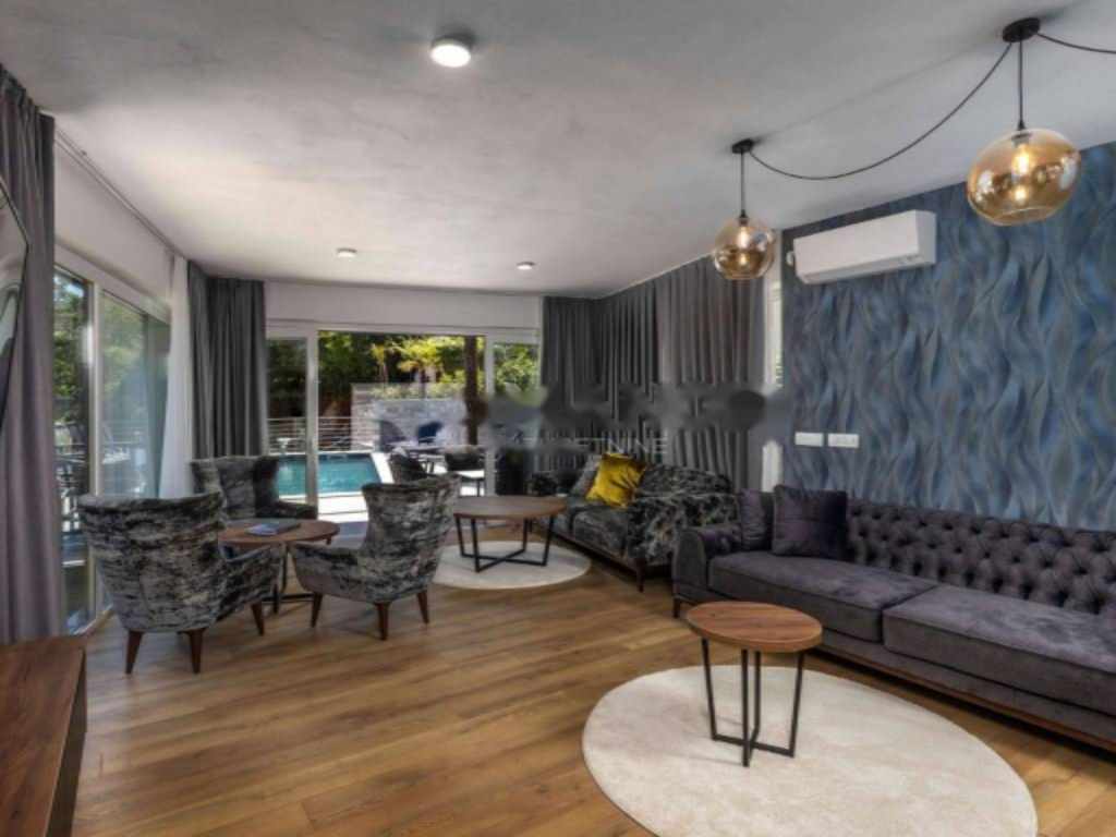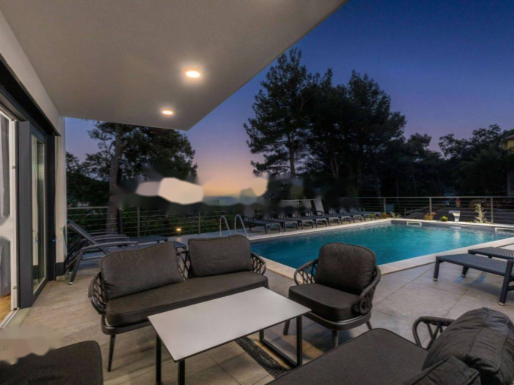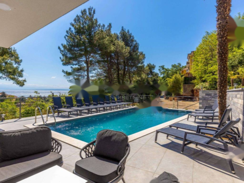 Вилла оборудована дизайнерской мебелью, выполненной на заказ. Паркет высшего качества, роскошные шторы и экзотическая растительность на ухоженной территории подчеркивают великолепие интерьеров. Большие стеклянные стены обеспечивают обилие естественного света, открывая панорамные виды на море и зелень Кварнера.