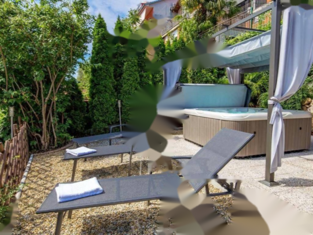 Владельцам доступен ухоженный двор с зоной для принятия солнечных ванн, джакузи, душем, летней кухней, барбекю и пространством для дружеских встреч. Также в стоимость входит два парковочных места в гараже.