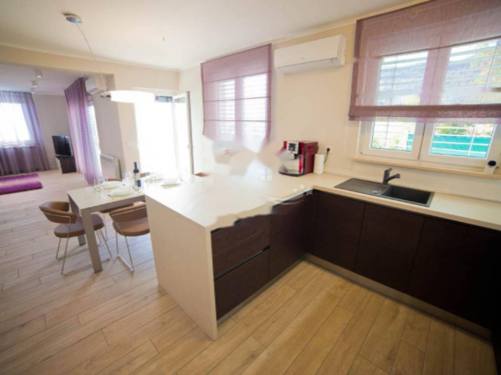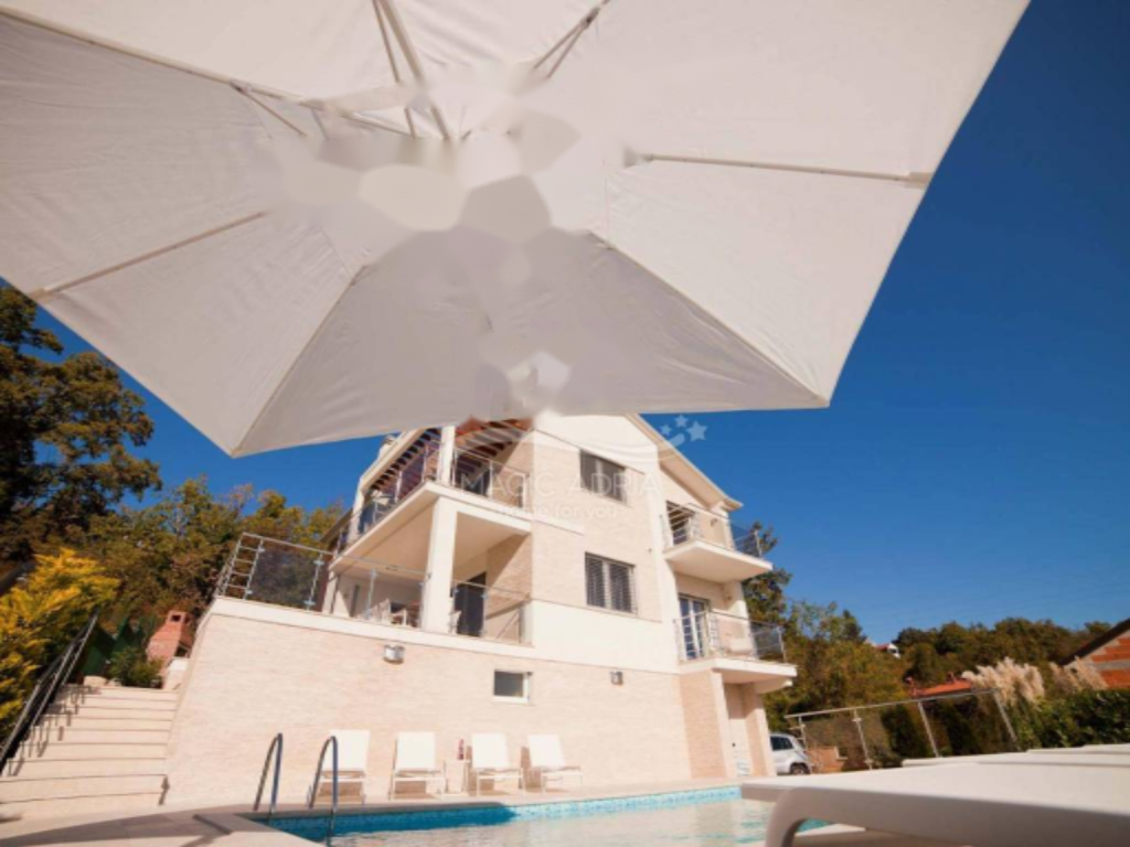 Представляем вашему вниманию роскошную новую виллу площадью 275 м², расположенную на участке 1073 м² в окружении зелени с потрясающим видом на весь Кварнерский залив и острова. Этот современный архитектурный проект, выполненный с использованием первоклассных натуральных материалов, предлагает комфорт и стиль проживания.