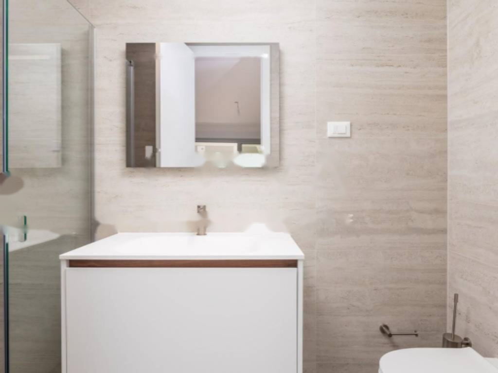 Внутреннее жилое пространство площадью 68,87 м² включает в себя две спальни, ванную комнату и дополнительный туалет. Каждый элемент интерьера разработан с особым вниманием для обеспечения ощущения пространства, света и уюта с использованием высококачественных материалов и современных отделок. Для дополнительного комфорта в квартире установлена независимая система кондиционирования, обеспечивающая охлаждение и обогрев.
