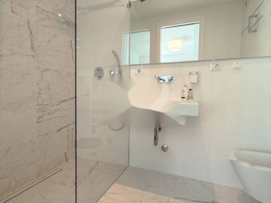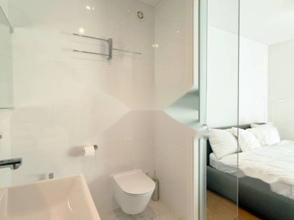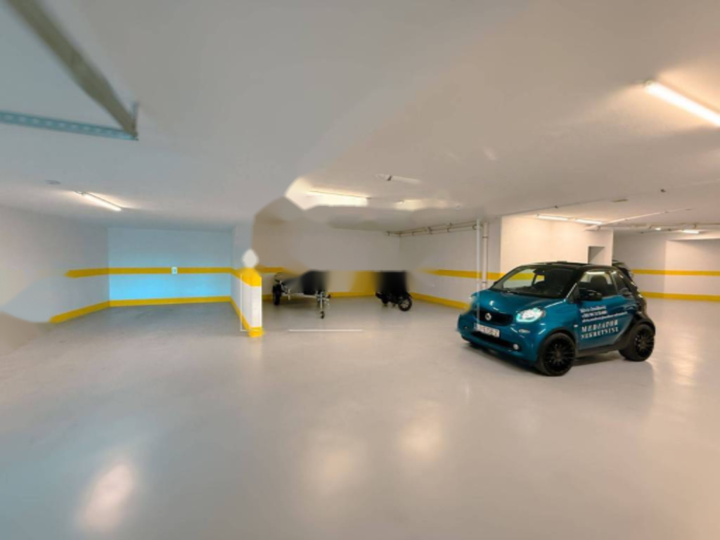 Квартира располагает двумя парковочными местами: одно в подземной гаражной зоне, другое — на околице здания. Лифт обеспечивает непосредственный доступ от гаража до квартиры, что обеспечивает комфортное проживание. Здание с бассейном, в которой всего восемь квартир, превышает ожидания по уровню уединения и эксклюзивности.