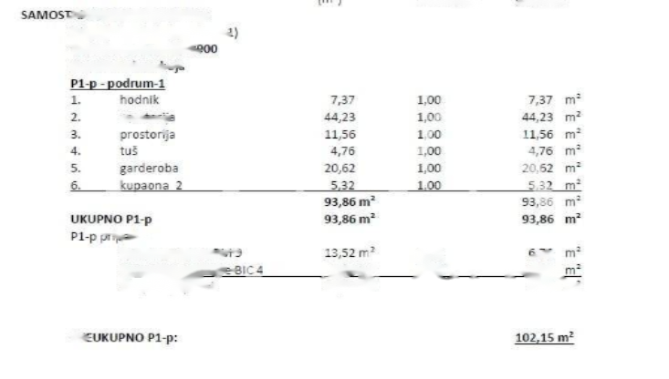 Общая площадь квартиры составляет 102,15 м², из которых внутренняя площадь — 93,86 м². Жилая площадь включает две комнаты, душ, гардероб и ванную комнату, предоставляя широкие возможности для адаптации под разные нужды — будь то проживание, ведение бизнеса или рекреация. Площадь крыши включает 13,52 м² гаражного парковочного места (PM9), а также отдельное хранилище (BIC4) площадью 3,05 м², что делает использование помещения более удобным и функциональным.