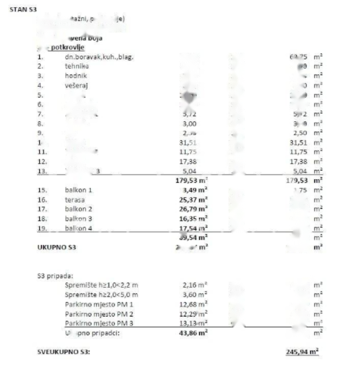 Общая площадь квартиры составляет 245,94 м², из которых 179,53 м² приходятся на внутреннее пространство. Планировка включает в себя три просторные спальни, три роскошно оборудованные ванные комнаты и дополнительный гостевой туалет. Открытая гостиная, соединенная с кухней и обеденной зоной, наполняется светом и элегантностью, создавая идеальное пространство для отдыха и общения. Пентхаус также располагает просторной террасой и четырьмя балконами общей площадью 89,54 м², с которых открывается завораживающий вид на море и Ривьеру Опатии. Внешние пространства обеспечивают полную уединенность и позволяют наслаждаться мягким средиземноморским климатом круглый год.