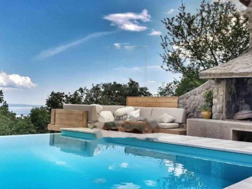 Предлагается роскошная семейная вилла в Вепринце, выполненная в одном этаже и расположенная в живописном месте с панорамным видом на море и Кварнер. Общая площадь составляет 400 м², включая основное здание и два просторных студио-апартамента, которые могут использоваться как гостевые помещения, или для персонала.