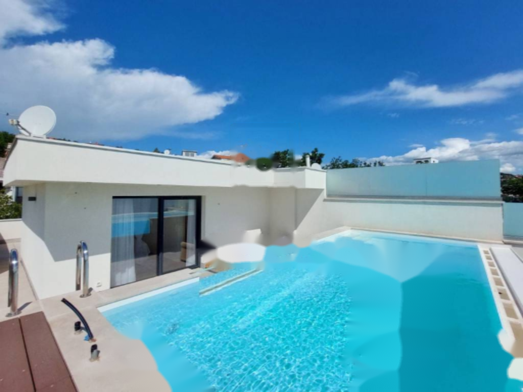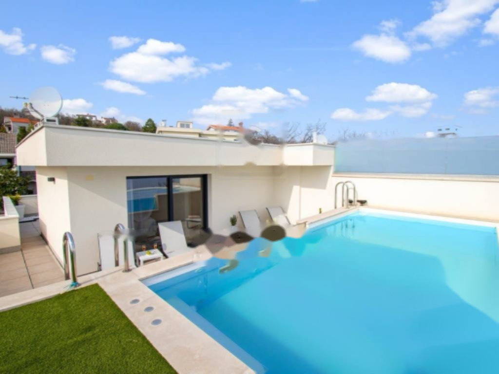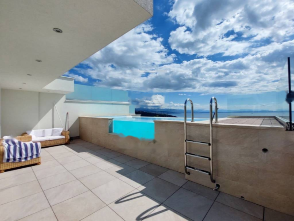 Предлагается роскошный дом на продажу в Опатии, общей площадью 460 м². Здание разделено на два трехэтажных апартамента, каждый из которых занимает четыре уровня: подвал, цокольный этаж, первый этаж и второй этаж.