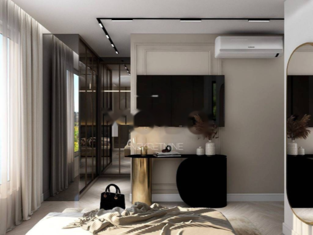 На территории гаража имеются два парковочных места. Квартира полностью меблирована и готова к проживанию. Общая площадь составляет 156 м², также предусмотрены балкон и терраса для наслаждения панорамными видами.