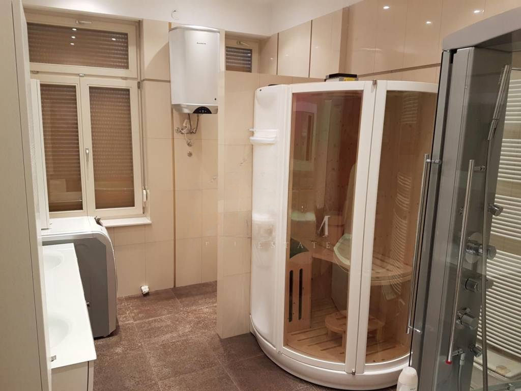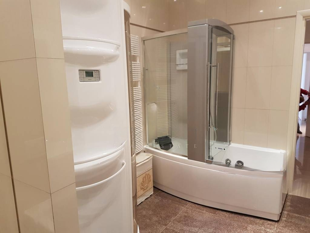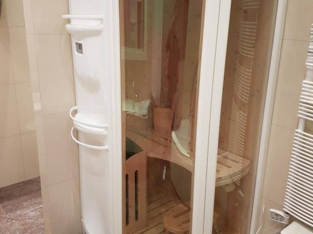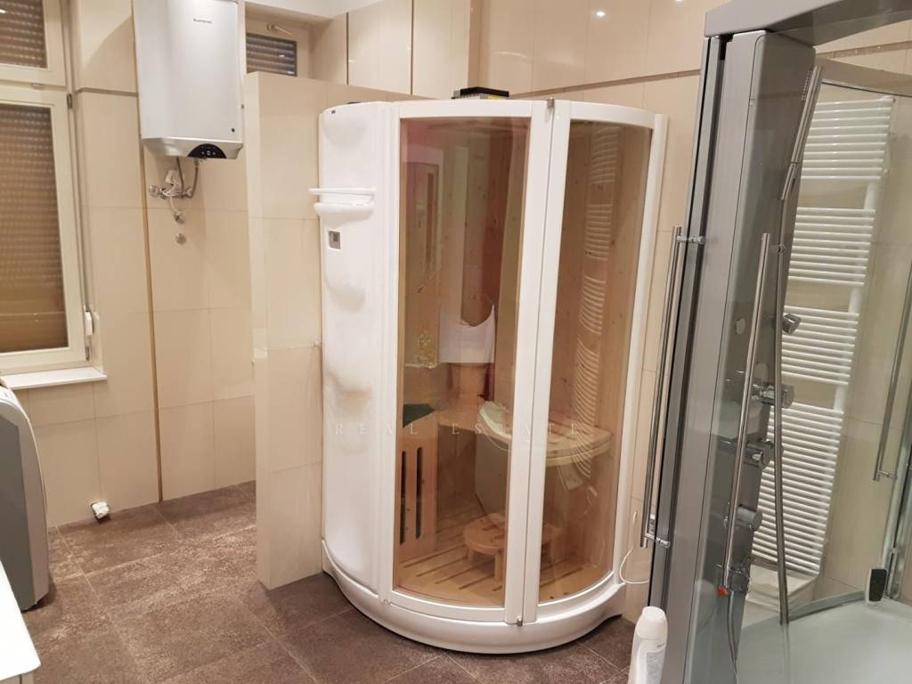 Специализированная сантехника включает джакузи и сауну марки TEUCO, а санузел оборудован современной сантехникой GEBERIT с интегрированным душем и феном. Климатическая система FUJITSU с четырьмя внутренними блоками и одной наружной обеспечивает кондиционирование и обогрев. Подготовлены коммуникации для центрального отопления.