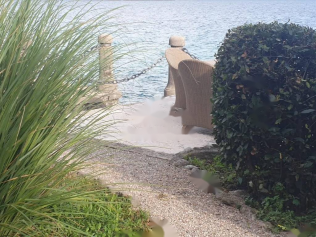 Участок украшен виноградной лозой, под которой располагается зона для барбекю и терраса, идеально подходящая для наслаждения свежим воздухом. Благодаря частной лестнице есть прямой доступ к морю, что делает это предложение уникальным.